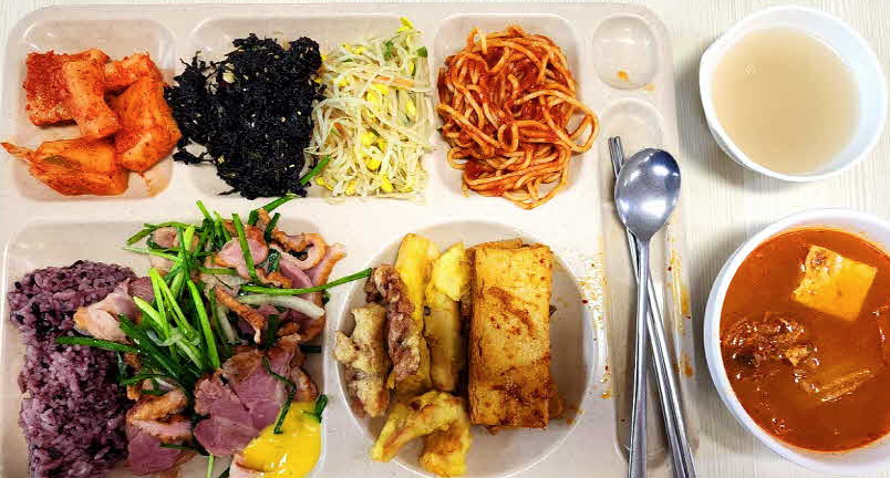 점심시간에는 저렴한 가격에 많이 먹을 수 있기 때문에 주변 직장인들이 많이 찾습니다. 식당 입구에는 그날 어떤 반찬이 제공된다고 합니다. 오늘 어떤 음식이 있는지 미리 확인할 수 있어서 좋았던 것 같아요. 김치찜, 된장국, 미역국 등 다양한 수프가 있고 김치를 제외하고는 매일 야채와 메인 반찬이 바뀝니다.