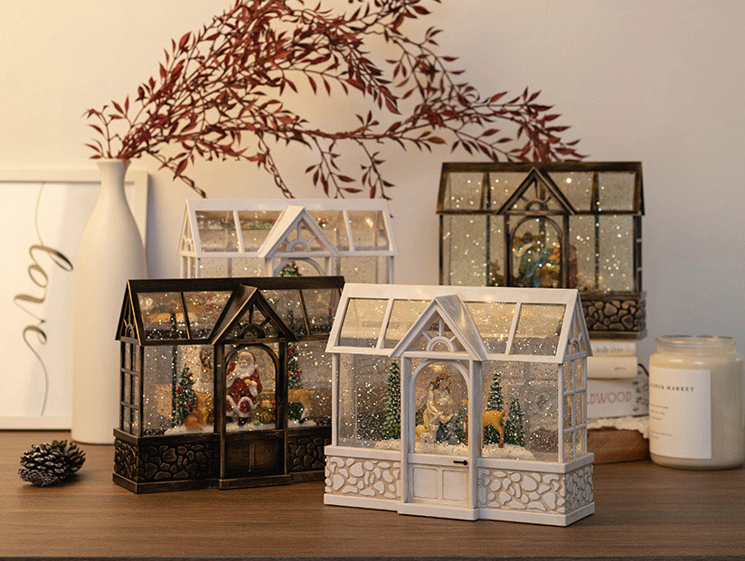 눈이 내리는 풍경이 담긴 스노우 글로브 오르골은
