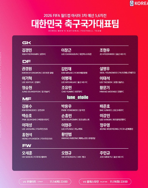 이번 한국 쿠웨이트 전은 2026 북중미 월드컵 예선 B조의 다섯번째 경기입니다