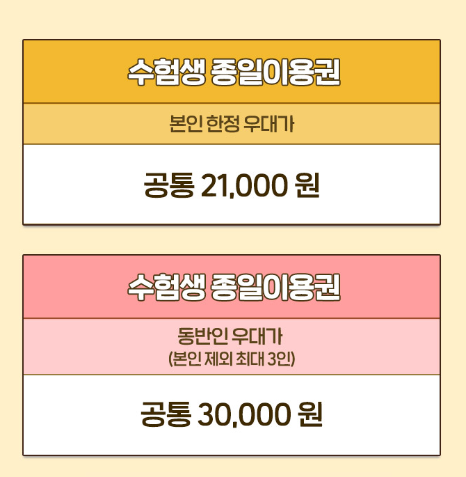 | 종일 | 이름 명예 수/험/생 중 한글자라도 포함 고객 | 52,000원 | 20,500원 | 주민등록증 제 |