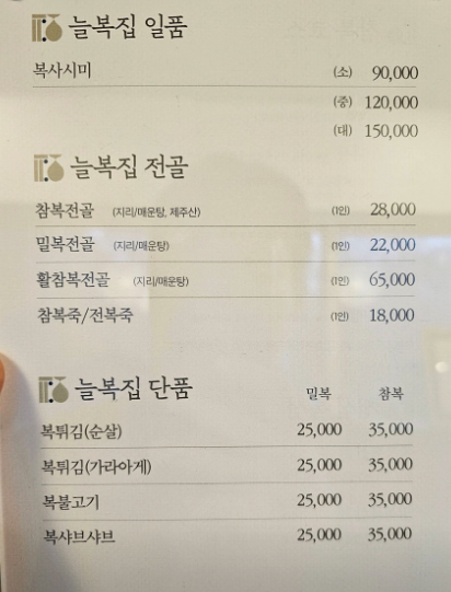 점심특선과 참복 코스요리가 가성비 좋게 준비되어 있다