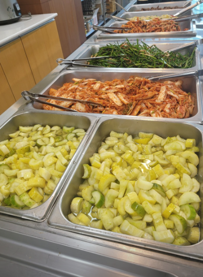 점심시간에는 저렴한 가격에 많이 먹을 수 있기 때문에 주변 직장인들이 많이 찾습니다. 식당 입구에는 그날 어떤 반찬이 제공된다고 합니다. 오늘 어떤 음식이 있는지 미리 확인할 수 있어서 좋았던 것 같아요. 김치찜, 된장국, 미역국 등 다양한 수프가 있고 김치를 제외하고는 매일 야채와 메인 반찬이 바뀝니다.